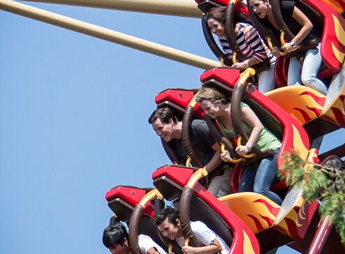 Schon von weitem erkennt man an der Silhouette, dass eine besondere Schlange auf ihre Adrenalin-Junkies wartet: Es ist „Cobra“, die Wahnsinns-Achterbahn im Freizeitpark Conny-Land.