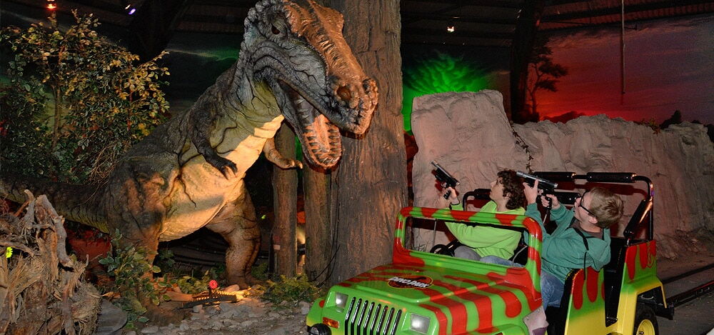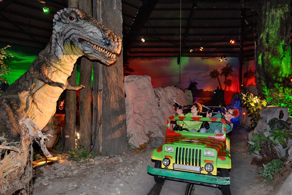Der beliebte Dino-Park, in welchem lebensechte und sich bewegende Dinosaurier gezeigt werden, wurde mit einer komplett neuen Anlage aufgerüstet: Im Jeep, in welchem die Besucher wie im Film „Jurassic Parc“ durch den Dschungel fahren, können die Fahrgäste mit einer Schiessanlage auf simulierte Feinde der Dinos schiessen, um diese zu verteidigen. Dabei kann jeder Passagier Punkte sammeln und sein Score am Ausgang des Parks einsehen, um zu beurteilen, wie gut er dabei war. Wir haben damit dem ausdrücklichen Wunsch unserer Gäste entsprochen.