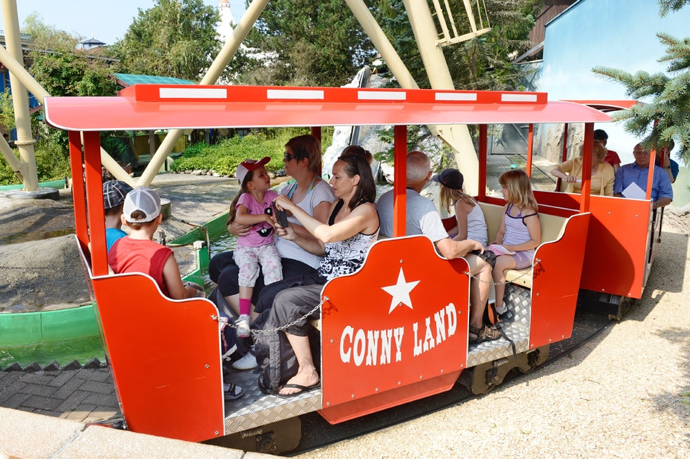 Die Attraktion für alle, die Ruhe und Entspannung suchen. Einmal mit der Bahn den Park durchqueren und die Seele baumeln lassen. Mit der Eisenbahn macht ihr Meter ohne zu gehen und seht dabei noch alles Wichtige im Conny-Land.