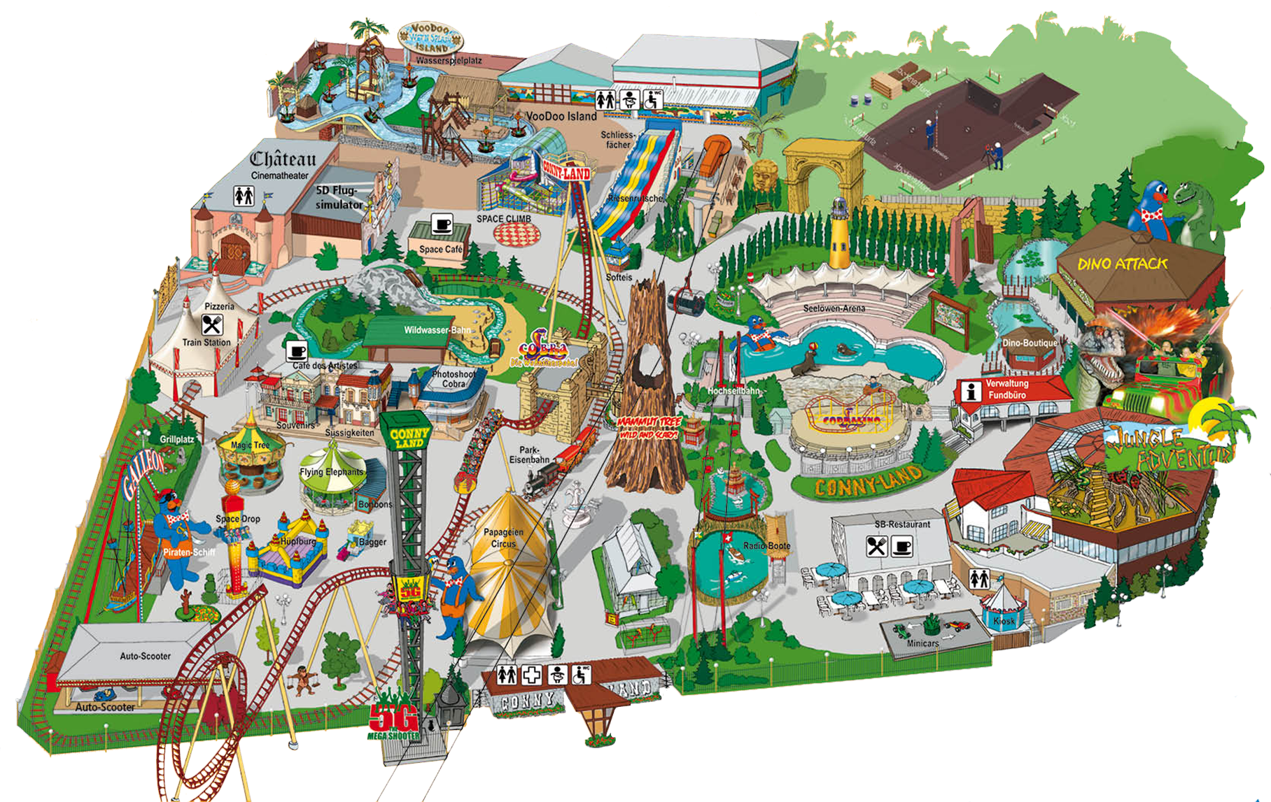 Egal ob du nach Attraktionen, Restaurants suchst, oder dich über die Grössen- und Altersbeschränkungen einer Bahn erkunden willst... hier findest du Antworten: